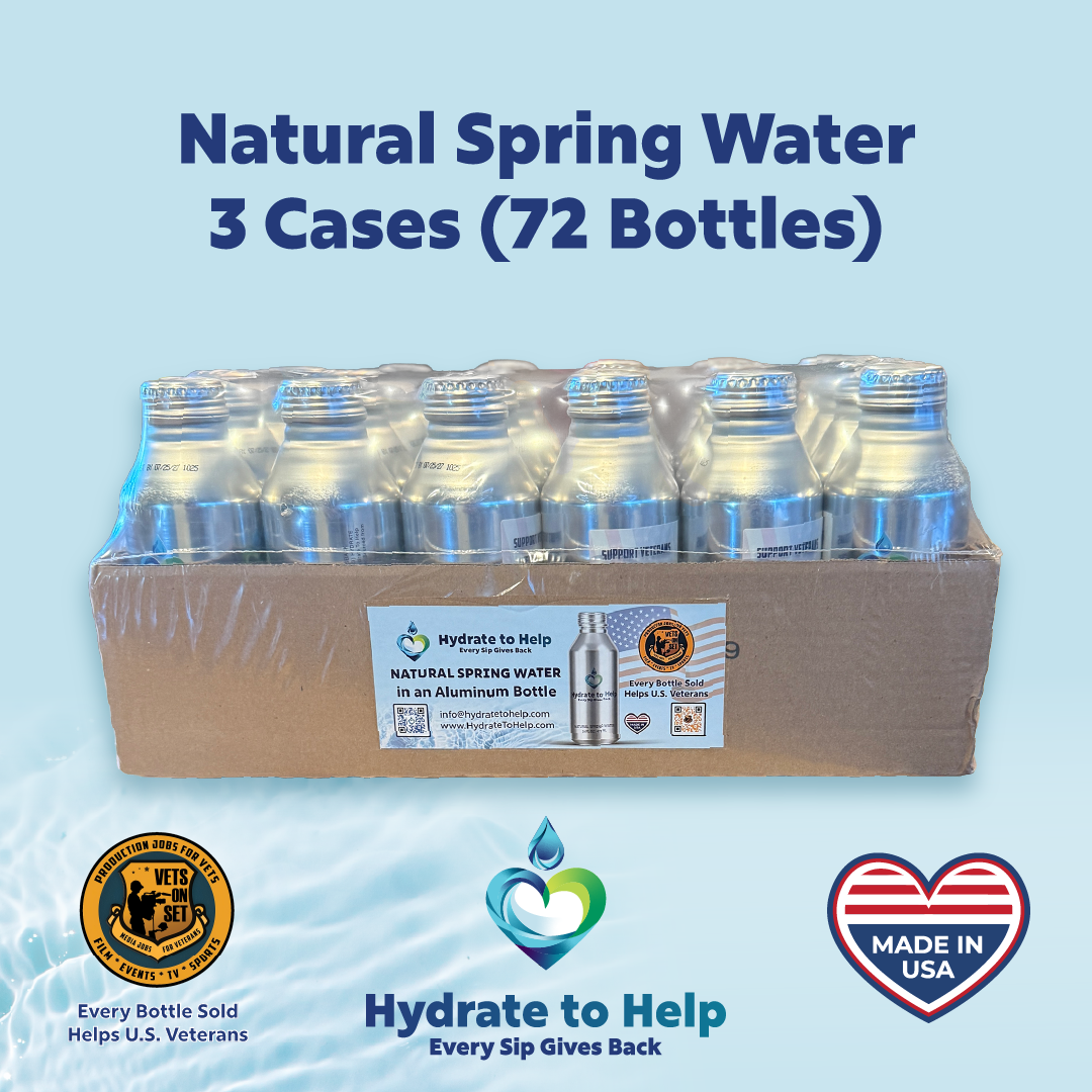 Stock up sustainably while giving back. With 3 cases (72 bottles total), you’ll have the perfect supply of premium water for your home, office, or adventures—packaged in eco-friendly, recyclable aluminum bottles.